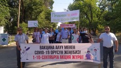 COVID-19: Панфиловдун айыл аймактарында эмдөөгө үндөө боюнча жөө жүрүш өтүүдө
