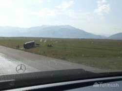 Суусамырда ат менен кагылышкан унаа оодарылып кетти